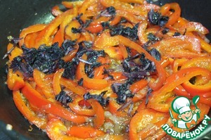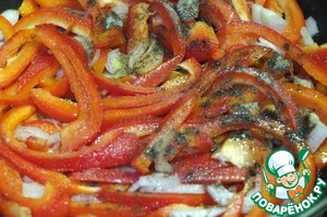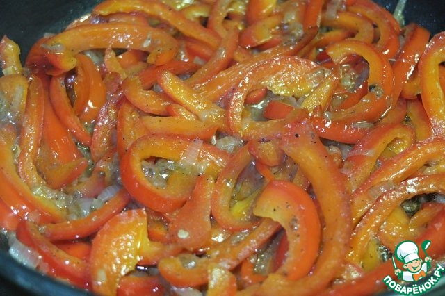 На сковороде разогреваем масло, добавляем перец и лук, солим, перчим.