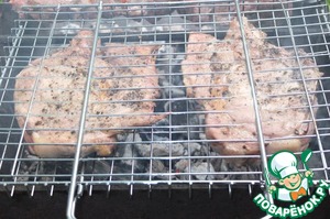 Щепу для подкопчения замачиваем в воде, как написано на упаковке. И выкладываем на угли. К аромату мяса добавится пряный запах копчения.