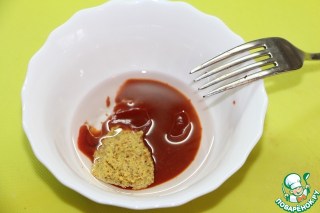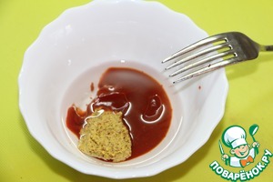 Через сутки смешать растительное масло, горчицу и томатную пасту.