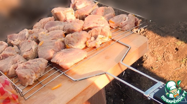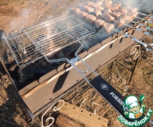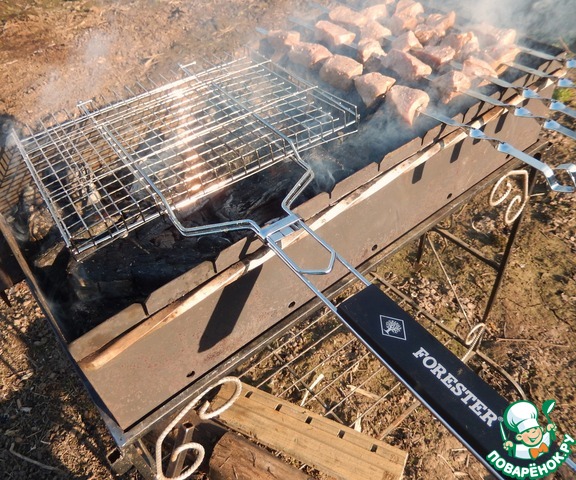 • Готовим мангал и угли. Решетку предварительно разогреваем и горячую смазываем растительным маслом.