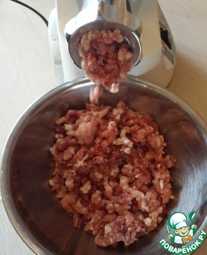 Телятину и баранину (50*50) прокрутите на мясорубке с самой крупной решеткой вместе с луком