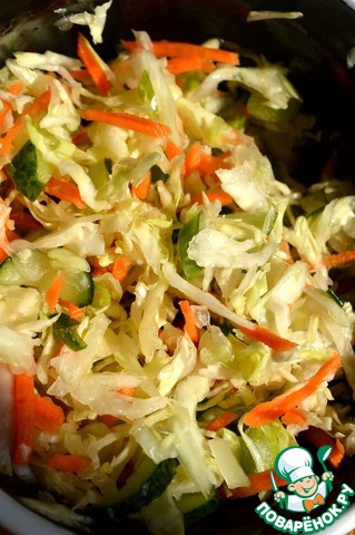 Остатками соуса я потом заправила именно смесь капусты, огурца и морковки, что и вам советую!