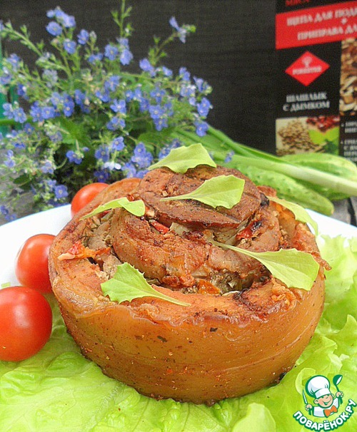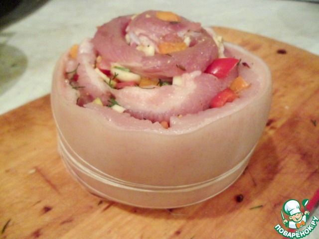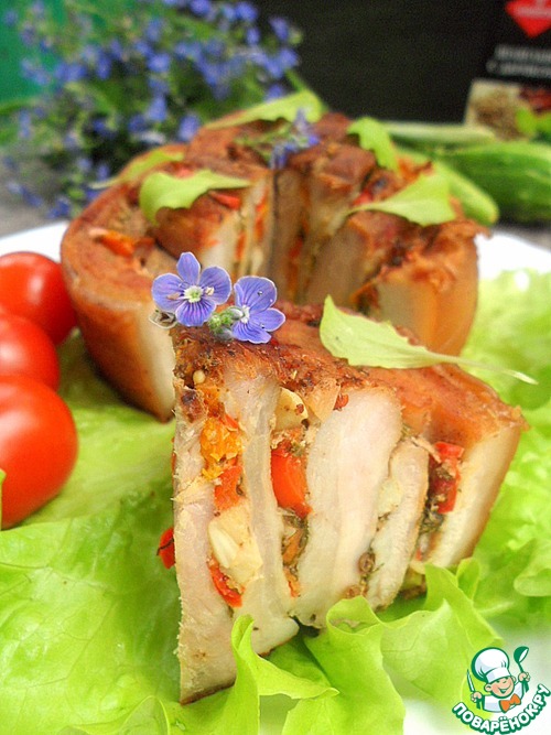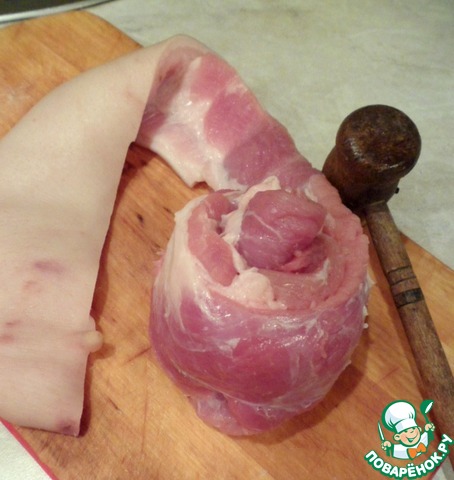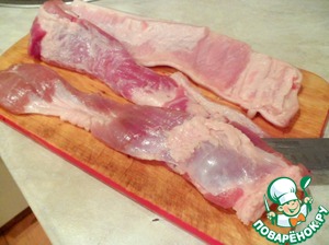 Ингредиенты для «Варено-копченый рулет из грудинки»: