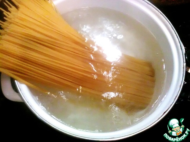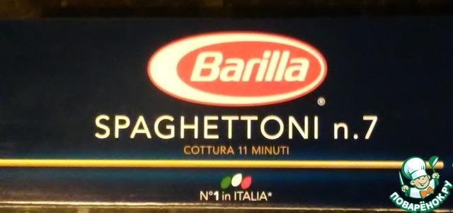 Теперь варим спагетти. Не в целях рекламы, пользуюсь только изделиями фирмы "Barilla". Пользуюсь редко, но эти макаронные изделия устраивают нашу семью.