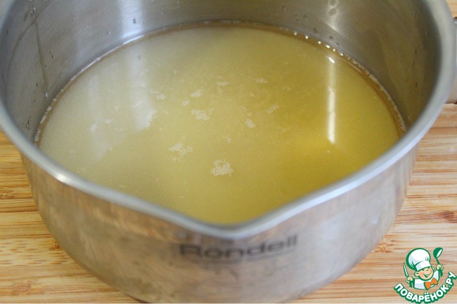 - взять из общего количества 80 мл, лимонный сок и сахар довести до кипения -