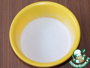 3. Когда на опаре появятся пузырьки, добавить растертые желтки, перемешать.