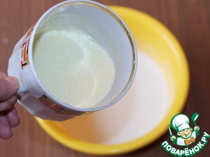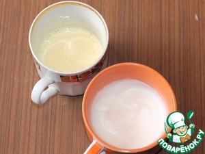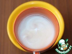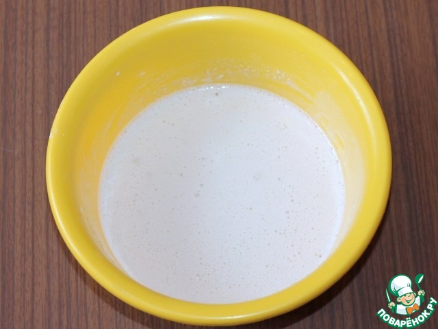 1. Смешать сухие дрожжи, 1 ч. л сахара и 120 г просеянной муки. Влить теплое молоко (170 мл). Размешать, чтобы масса была однородной, и поставить в теплое место до появления пенной шапочки.