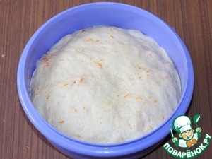 10. Закрываем тесто крышкой или пленкой и ставим миску в теплое место для вот такого подъема теста ( в 2,5 раза).