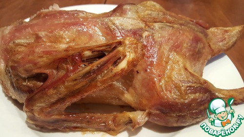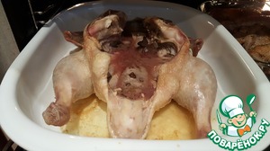 Включить разогрев духовки 200*. Смазать форму для запекания оливковым маслом. Кладём утку спиной вниз и отправляем форму в разогретую духовку, через 30 минут я аккуратно перевернула утку. Общее время запекания у меня составило 75 минут. Ориентируйтесь на Вашу духовку!!!