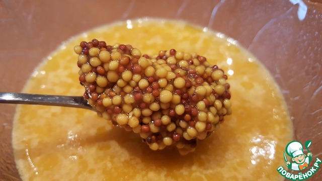 Добавить в соус горчицу с зёрнами. Перемешать.