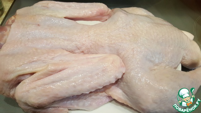 Вымыть утку. Обсушить. Если Вам не нравится ярко выраженный утиный запах, отрежьте гузку. Мы обожаем утятину и ничего не отрезаем.