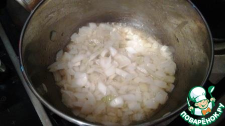 Лук обжарить на смеси масел до золотистого цвета в кастрюле с толстым дном. Я люблю использовать именно такую смесь для обжарки, но можно и просто на растительном масле.
