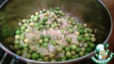 Добавить горошек и все перемешать, дать так потомиться пару минут