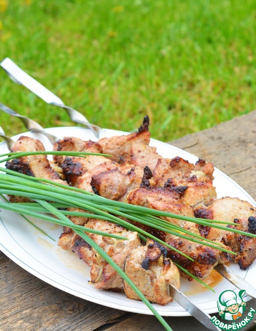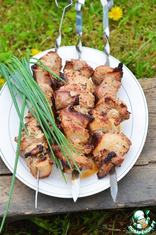 Несложный маринад - прекрасный результат! Зернышки горчицы придают шашлыку особую пикантность!