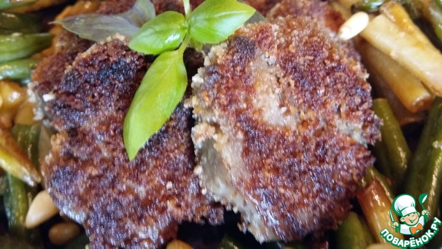 Посыпать панировочными сухарями и быстро обжарить в небольшом количестве растительного масла до румяной корочки.
