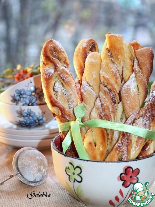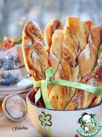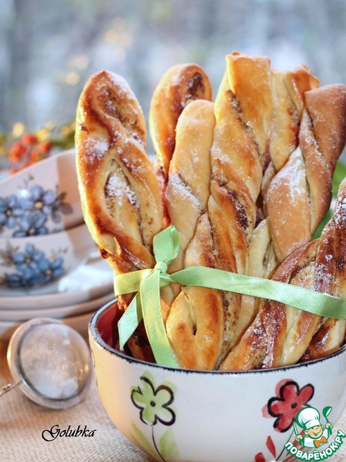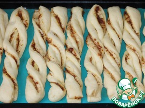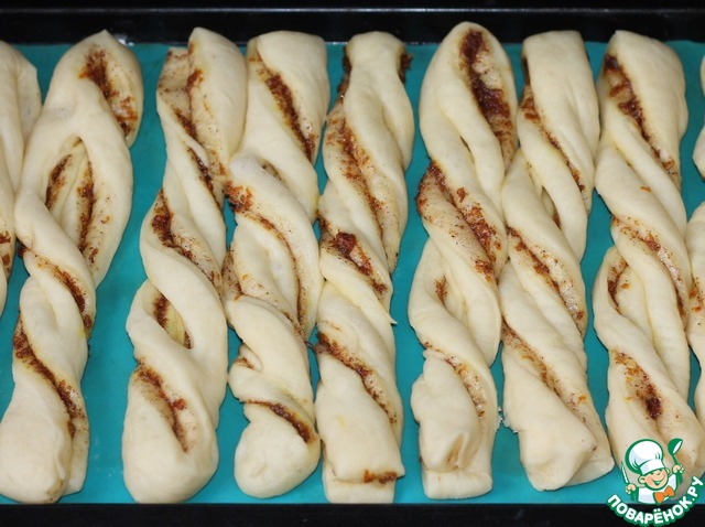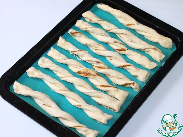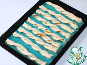 11. Скрутить полоски теста и положить на подготовленный противень. Накрываем полотенцем.