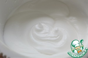 вводить сахар небольшими порциями до крепкой и блестящей пены. -