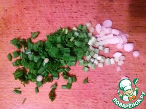 Далее нарезаем лук и так же отправляем в кастрюлю