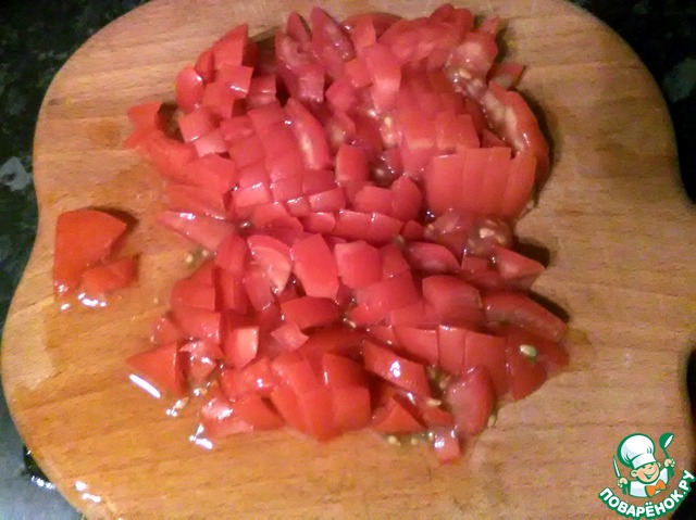 Нарезаем его на половинки и добавляем к тушенным овощам