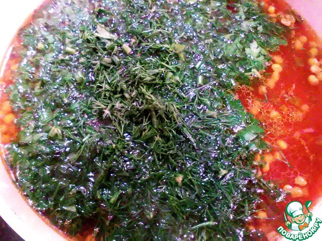 Нарезаем укроп и петрушку. Когда картофель в супе готов, добавляем лимонный сок, солим. Добавляем зелень. Накрываем крышкой и выключаем плиту.