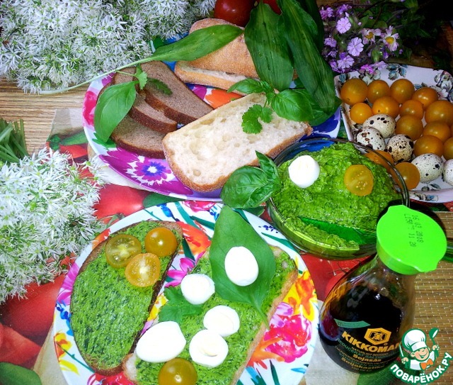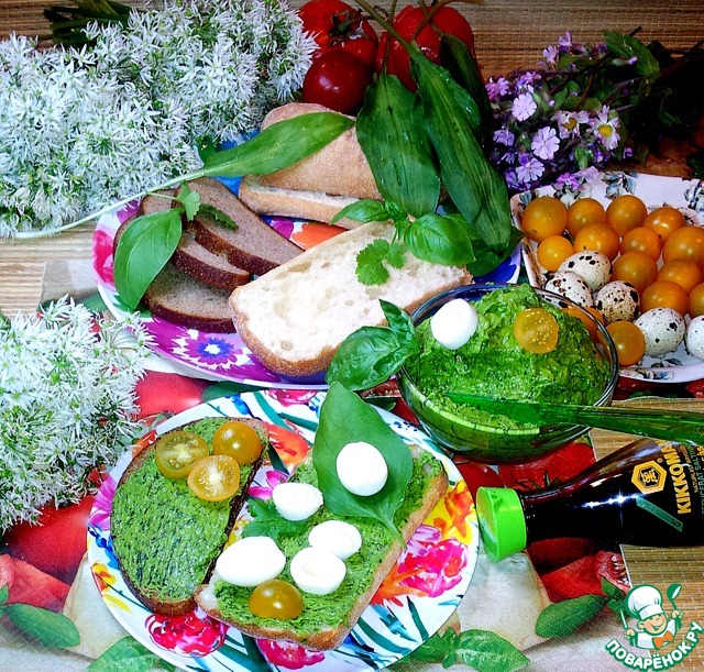 На свои бутерброды я положила перепелиные яйца, помидоры и листья базилика. Мои мужчины бутерброды ели с сыром, мясом и др.