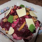 нажала не туда)))Я как-то мариновала свеклу в смородине - подходят они друг к другу. Очень интересный салат!