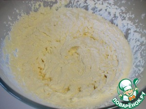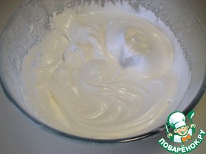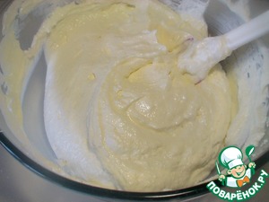 Ввести очень аккуратно взбитые белки в творожную массу, вмешивая движениями снизу