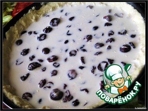 Залить получившейся массой пирог и поставить выпекаться в разогретый до 200 град. духовой шкаф на 30-35 минут.