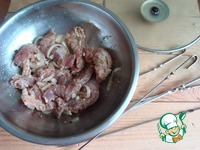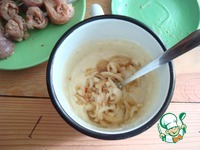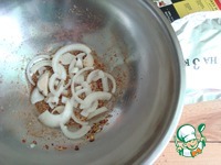 Просеяла муку и выложила лук из-под маринада шашлыков.