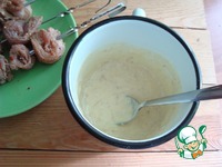 Пока шашлык не положила на мангал, а замесила лепёшку. Налила мацони и погасила в нём соду, добавила соль, сахар и яйцо. Всё перемешала и выложила овсянку. Дала ей разбухнуть минут 5.