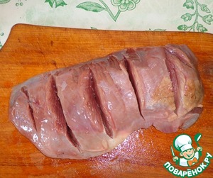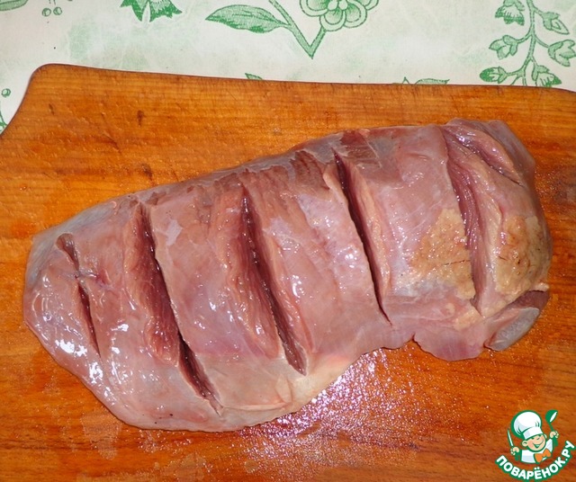 Мясо берем большими кусками и делаем надрезы.