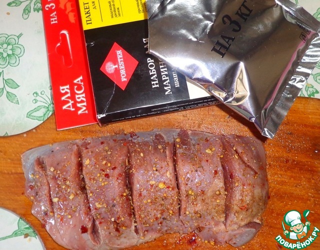 Каждый кусок мяса натереть приправой от Forester.