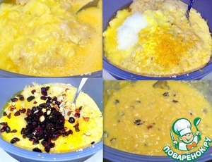 ванильный сахар, цедру лимона, изюм, клюкву,