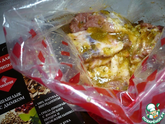 В мясе сделать неглубокие надрезы, натереть маринадом и положить в пакет для маринования от "FORESTER", поставить в холодильник на 24 часа.