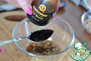 Смешаем вино, имбирь, соевый соус "Киккоман" и крахмал