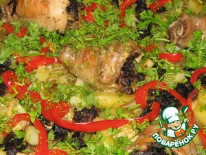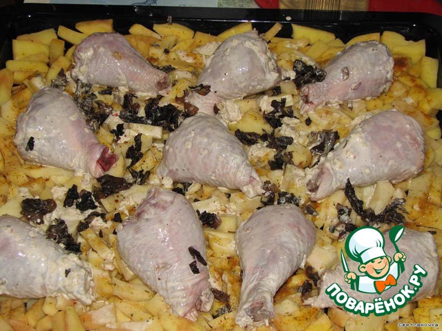 Я никак не могла решить, как же мне приготовить курочку: то ли по рецепту elena_110 «Курица с картофелем и луком «Аппетитная», или же по рецепту Julja_lja «Куриные ножки, фаршированные грибами и сыром». Затем решила, что не буду мучиться и объединю оба рецепта в один, конечно, внеся свои коррективы в приготовление. Именно в таких муках родилась «Бинарная курочка», но они того стоили! Ещe раз огромное спасибо за идеи elena_110 и Julja_lja!!!