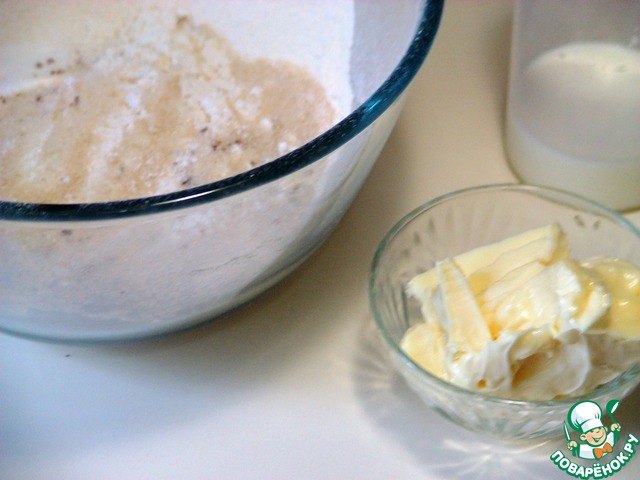 Всыпать коричневый сахар или мусковадо, ванилин, добавить размягченное сливочное масло, влить молоко и вымесить гладкое однородное тесто. -