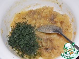 Добавить масло, нарезанный укроп, соль и перец. Перемешать.