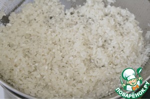 Рис промыть в холодной воде 5 раз и откинуть на сито - обсушить