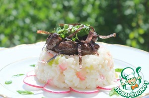 Восток - дело тонкое - сегодня у нас в меню блюдо с большим восточным акцентом, а если точнее - в японском стиле. Очень сбалансированное и вкусное! Легкое и сытное. Хорошо и в горячем, и в холодном виде. Можно взять с собой на природу, уложив в контейнер в стиле бенто. И на праздничный стол не стыдно подать! Пикантные, упругие сердечки отлично сочетаются со сладко-кислым рисом с жареным редисом и огурцом, с кинзой и перчиком чили. Заинтересовала? Заходите - будем пробовать!