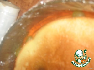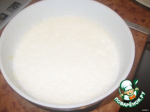 - Сахар (бисквить - 1 стак., прослойка - 2 ст. л.) — 1 1/4 стак.
