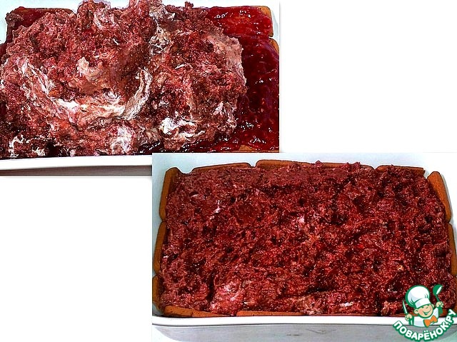 Основу густо намазала малиновым вареньем. -