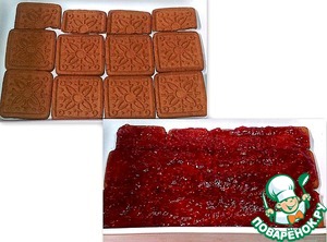 200 г печенья разложила, как основу на дно