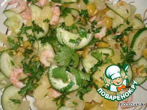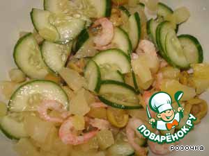 Легкий салатик с креветками и ананасом. Без майонеза.