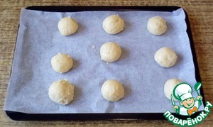 Готовые шарики выложить на противень, застеленный пергаментом.