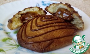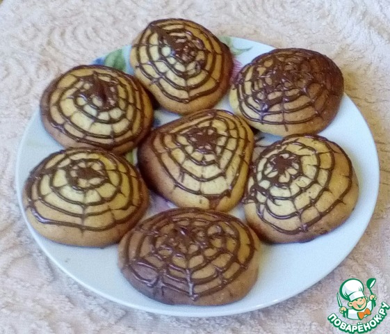 Это песочное печенье с начинкой из варёной сгущёнки, украшенное шоколадной паутинкой. Лучше сразу пробовать!! )) Приглашаю на утренний чай и кофе!! )))
