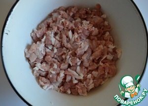 Порежем свинину небольшими кусочками. Сало можно срезать и подморозить, чтоб затем мелко порезать.