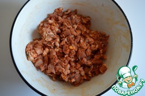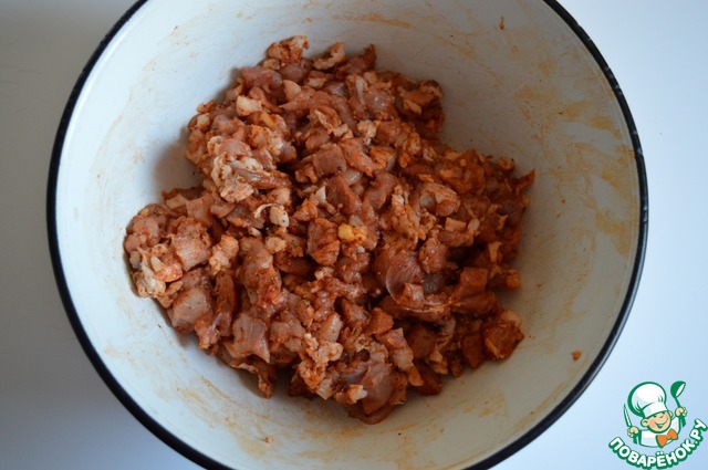 Тщательно вымешиваем мясо со специями и оставляем мясо на некоторое время.