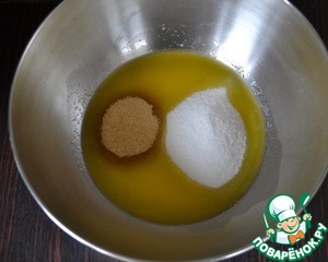 Первым делом растопить в микроволновке сливочное масло, оно должно расплавиться, но не быть горячим! Добавить в миску с маслом оба вида сахара... Еще лучше, если коричневый сахар будет сорта мусковадо!