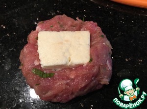 Из фарша сформируйте лепешку, посередине положите сыр,